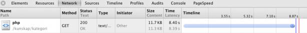 Laddningstid för kategori PHP men endast en artikel i kategorin är 8.9s.